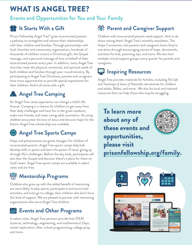 Click here for more information on Prison Fellowship Ministries and Angel Tree Camp.